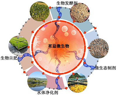 “有益微生物存在于整个循环养殖体系的始末”:在秸秆饲料生产阶段是生物发酵剂、进入禽类和鱼类体内是微生态调节剂、进入水体是水体净化剂、经过一系列生长繁殖和生理代谢生产出富含营养价值的菌肥后施入农田是生物有机肥。